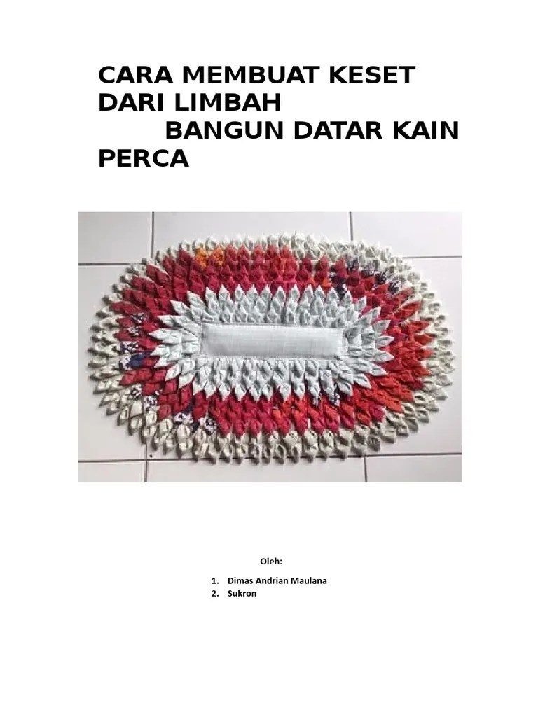 Untuk para pembaca yang dirumahnya banyak kain . Cara mudah membuat keset dari kain perca tak terpakai sumber kaoshits.com. Tertarik untuk mempelajari cara mudah membuat kerajinan keset dari kain perca yang tidak . Beberapa bola tali kaos dengan . Cara bikin sendiri keset lantai warna warni dari bahan kaos bekas tanpa jahit. Lipat segi tiga serong ,lalu lipat · 2. Tutorial kreasi kain perca kreasi kali ini adalah cara membuat keset dan disulap dari kain perca sangatlah mudah. Bentuk kain yang tebal dan yang tipis sesuai selera . Salah satunya yaitu berupa kerajinan keset. Gunting kain sisa 10 x 10 cm. Material dan barang yang dibutuhkan : Berikut adalah cara membuat keset dari kain perca,. Cara membuat keset kaki sendiri kerajinan tangan dari kain